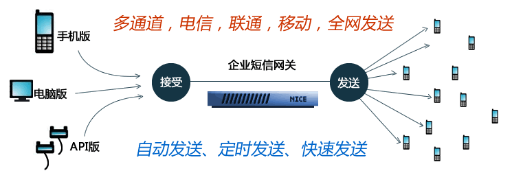 耐思短信平台是新会蜘蛛网开发的短信发送平台,客户只要申请开通短信用户,就可以快速发送信息,大大提高工作效率。使短信成为企业与客户、企业内部员工之间、供应商双向沟通,资讯交流最快捷、最节省的通信工具。广泛地运用于企业内部发送会议通知、活动通知、客户联系、社会团体会员管理等日常工作。用户通过访问网站 http://sms.pc51.com/ 向多个手机用户快速发送信息,大大提高工作效率。