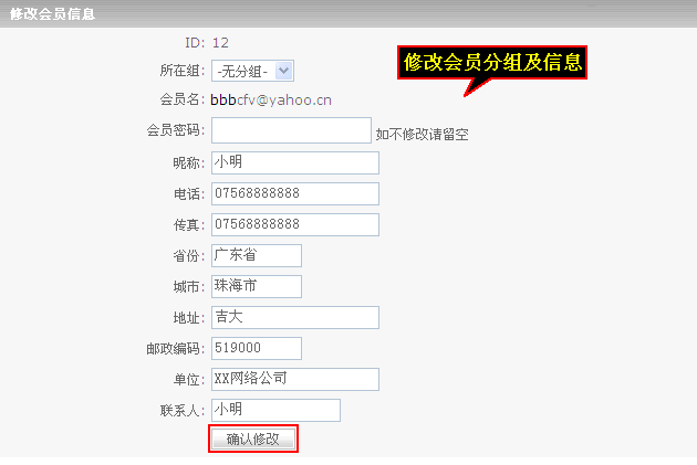这里可以删除、修改会员组,可以添加会员组,输入会员组名后点击“确认添加”。